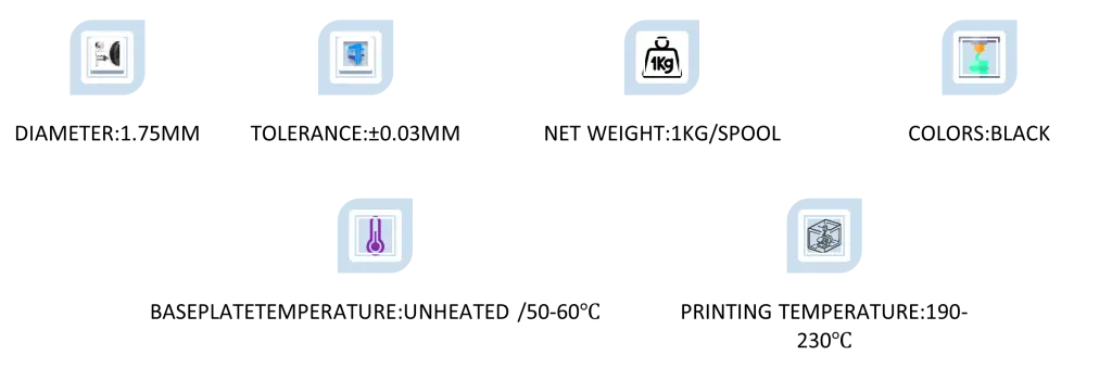- Printing Temperature: 190-230 ℃